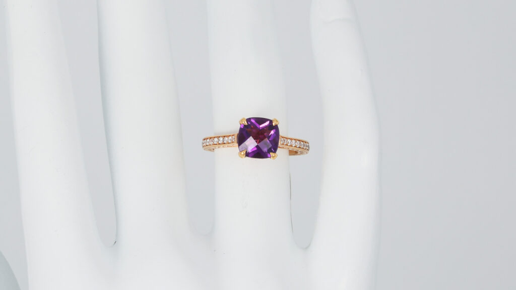 B4222 18K Amethyst 7x7mm Diamond .20 tw SI1-VS2 FG Sizing Additional