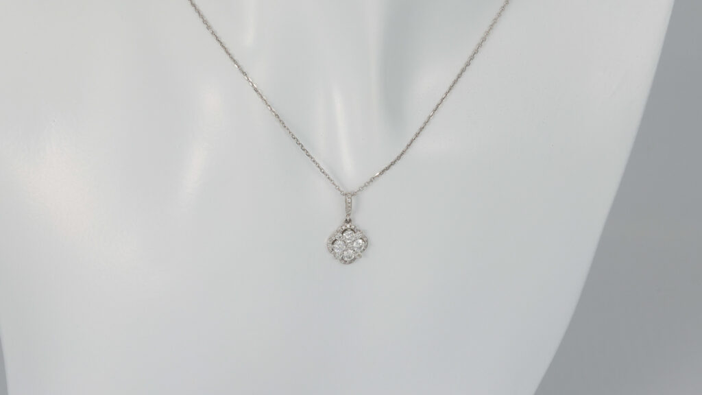 B5563 14K white gold Diamond .65tw SI1-2 GH (full and single cuts) and 18″ adjustable cable chain
