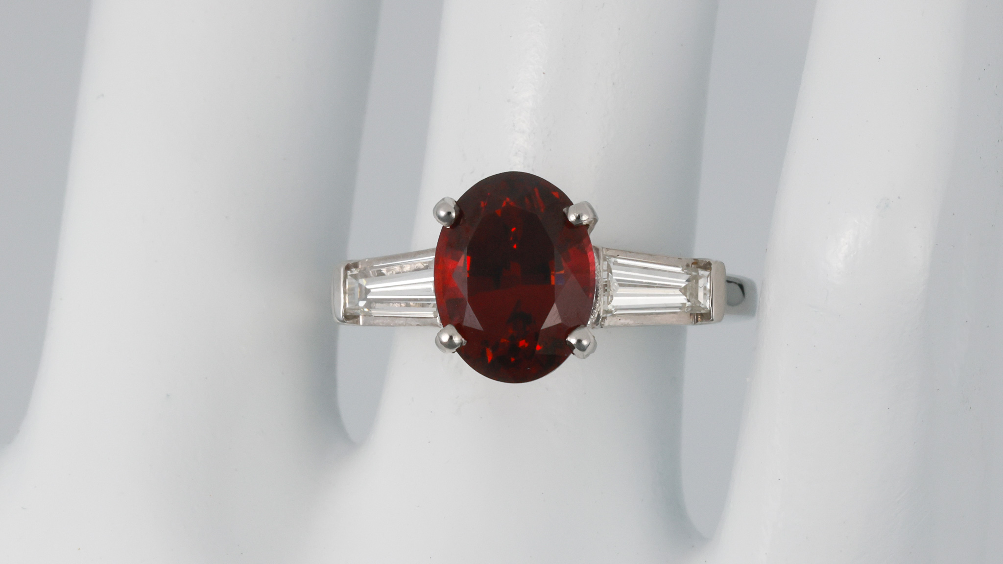 B3249 Platinum .70ct.tw. F VS1 Baguette Diamonds 3.51ct. Precision Cut Rhodolite Oval Sizing Additional