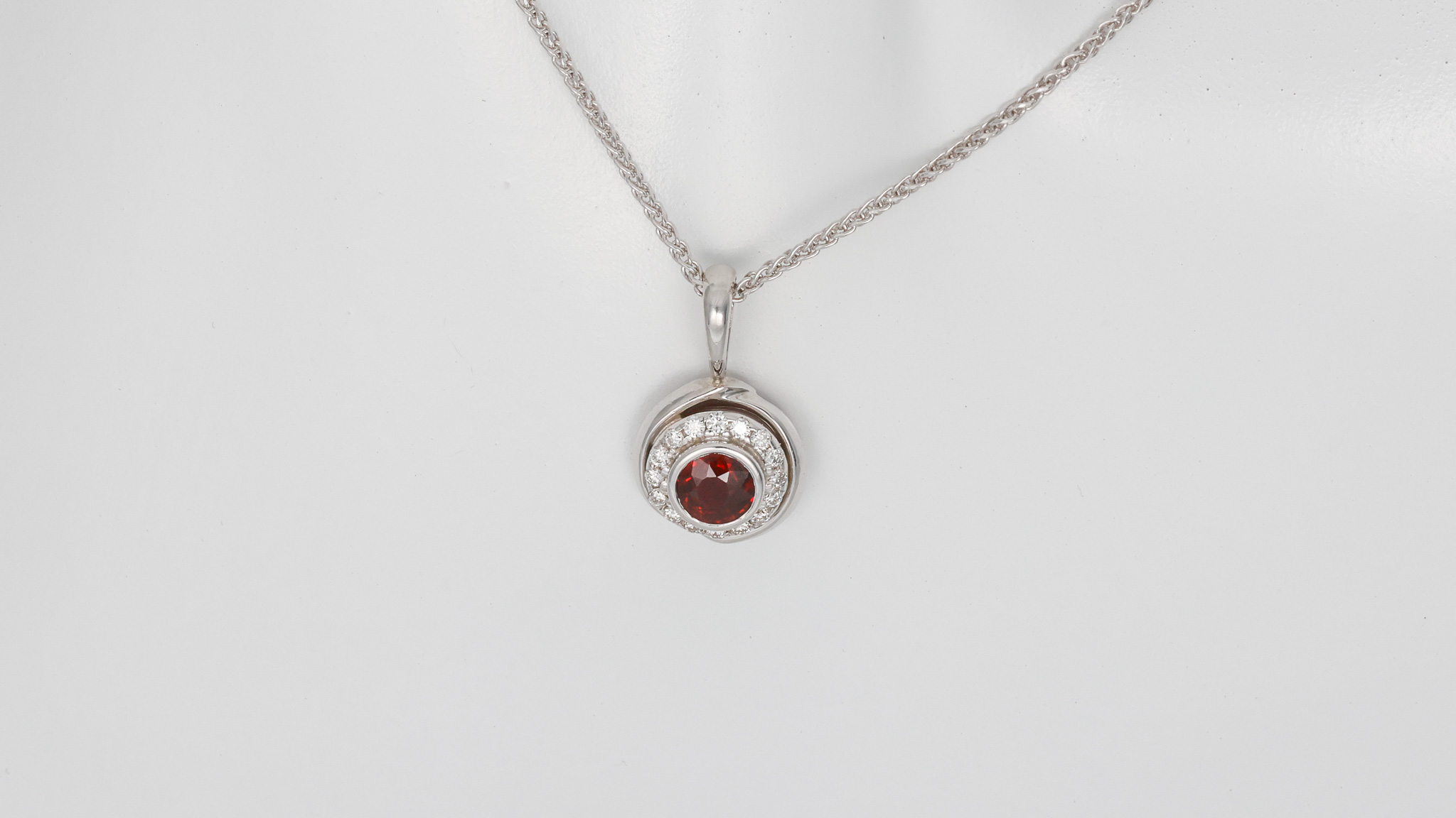 B6119 14K white gold .10ct.tw. SI GH .48ct. Ruby Round Gem Quality (Chain Additional)